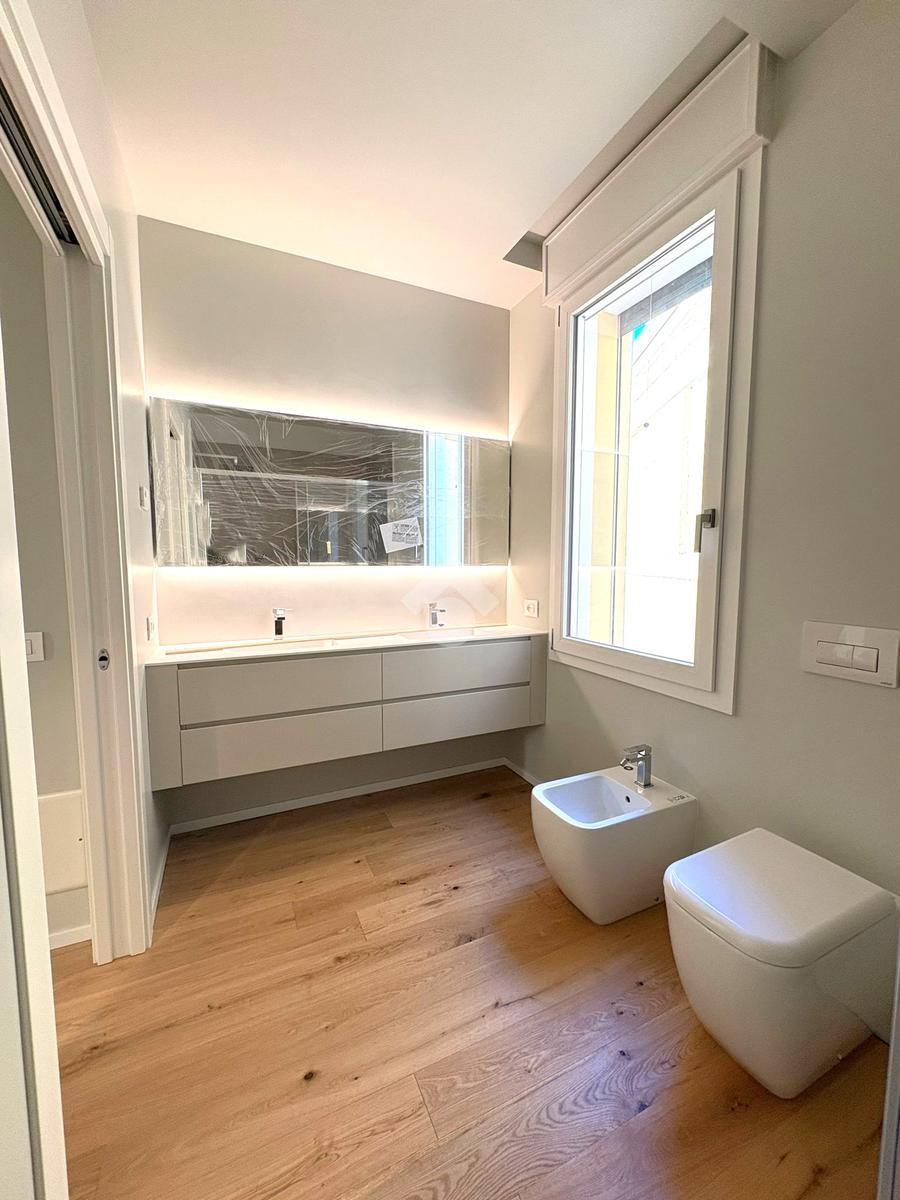 L’appartamento offre arredo di pregio con cucina con piano ad induzione, bagni con mobilia dal design moderno, pavimentazione con parquet in legno rovere a listoni, serramenti in triplo vetro camera con modalità anti ribalta ed antifurto e riscaldamento a pavimento con pompa di calore.