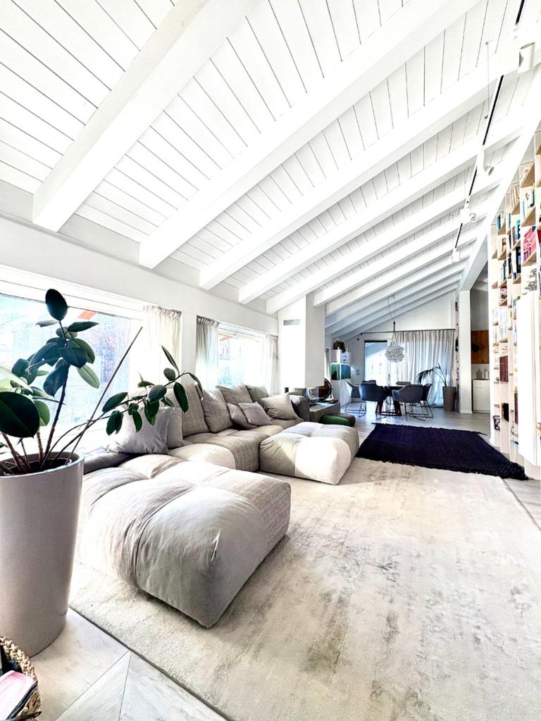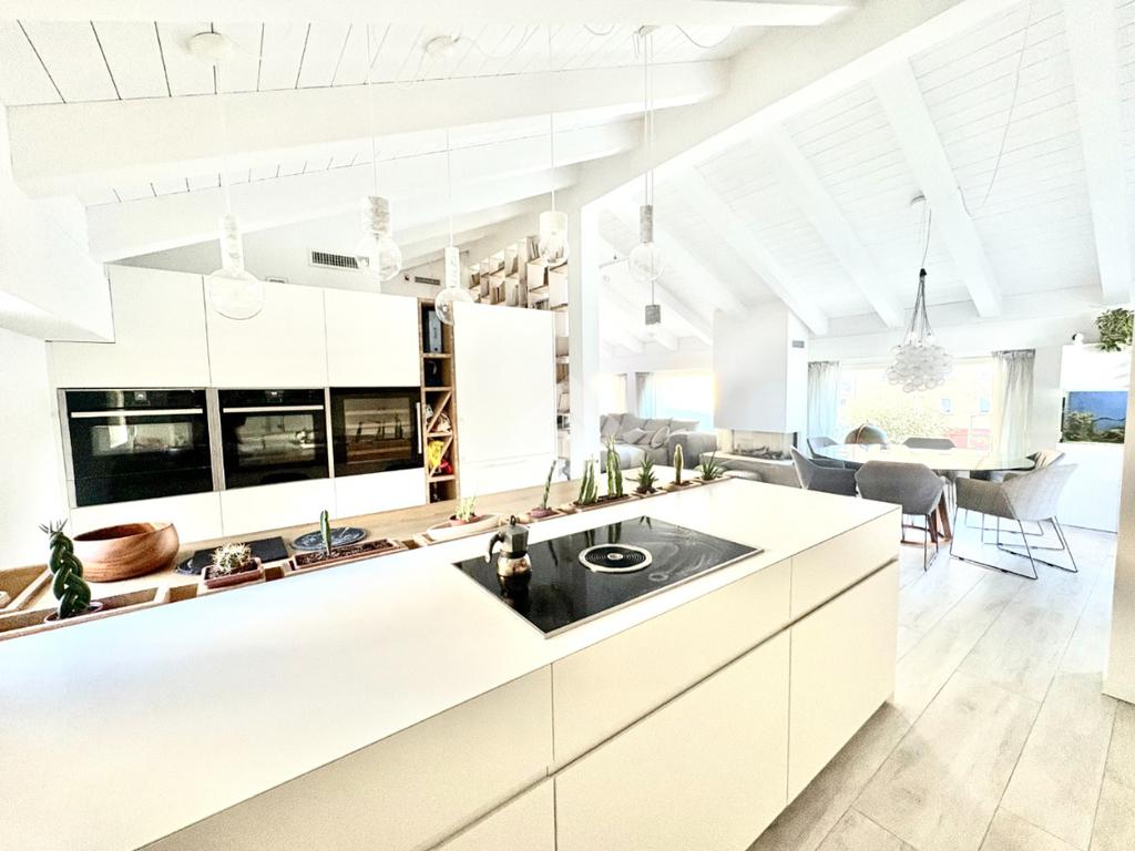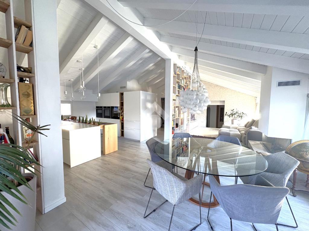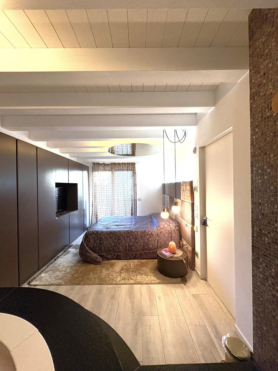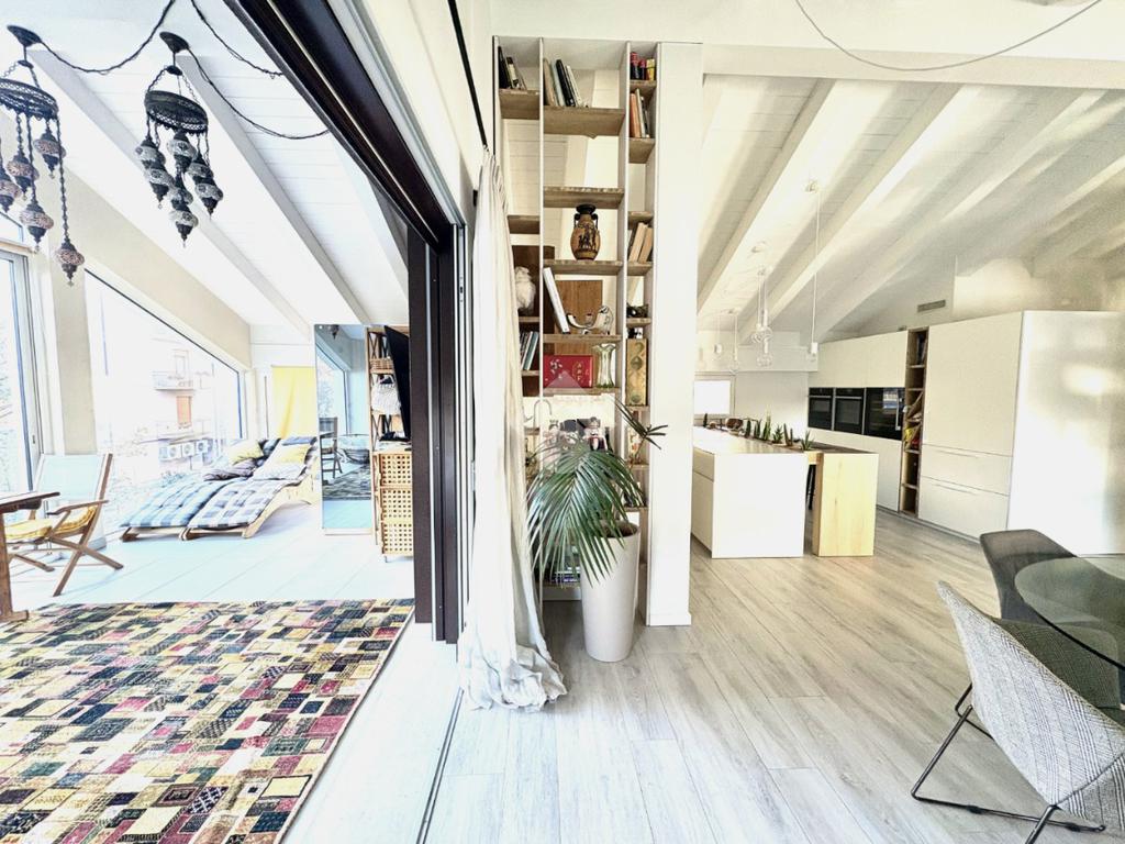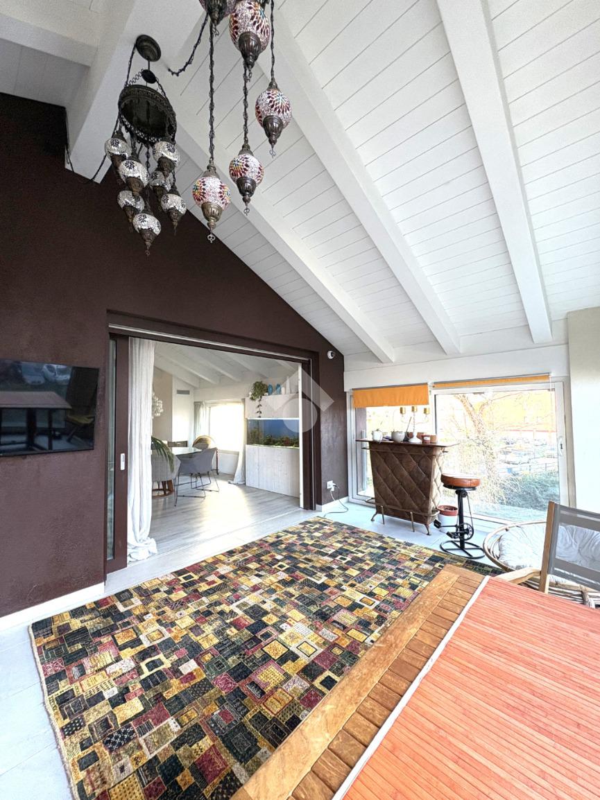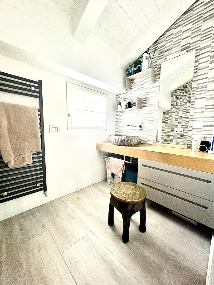 La proprietà presenta ingresso su disimpegno che separa zona giorno e zona notte in due livelli sfalsati; lato sinistro troviamo ampio soggiorno living di circa 60 mq con cucina a vista, camino ed accesso a comoda terrazza di circa 30 mq con sauna privata, studiata per un profondo benessere dopo una lunga giornata intensa godendo inoltre della gradevole vista sul fiume, camera studio e bagno di servizio, proseguendo, troviamo le camere da letto di cui una matrimoniale di oltre 18 mq con vasca idromassaggio interna, doccia cromoterapia e terrazza di pertinenza, 2 camere doppie e bagno padronale con cabina doccia doppia seduta interna per un totale relax, locale caldaia ad uso ripostiglio.